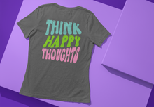 This Think Happy Thoughts T shirt is a latest design. It carries a 3-color design is designed to catch eyes and to be trendy. Keep a positive attitude by always thinking happy thoughts. Produced on a Unisex 100% preshrunk cotton blank.
